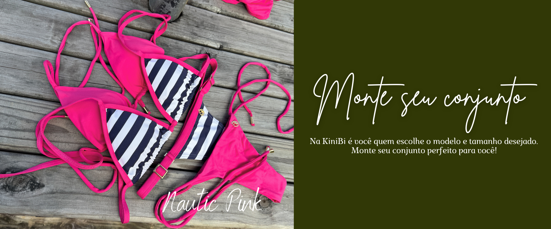 Conjunto Biquíni Nautic Pink | Top Cortininha com Abertura para Bojo | Tanga Fita para Marquinha Perfeita