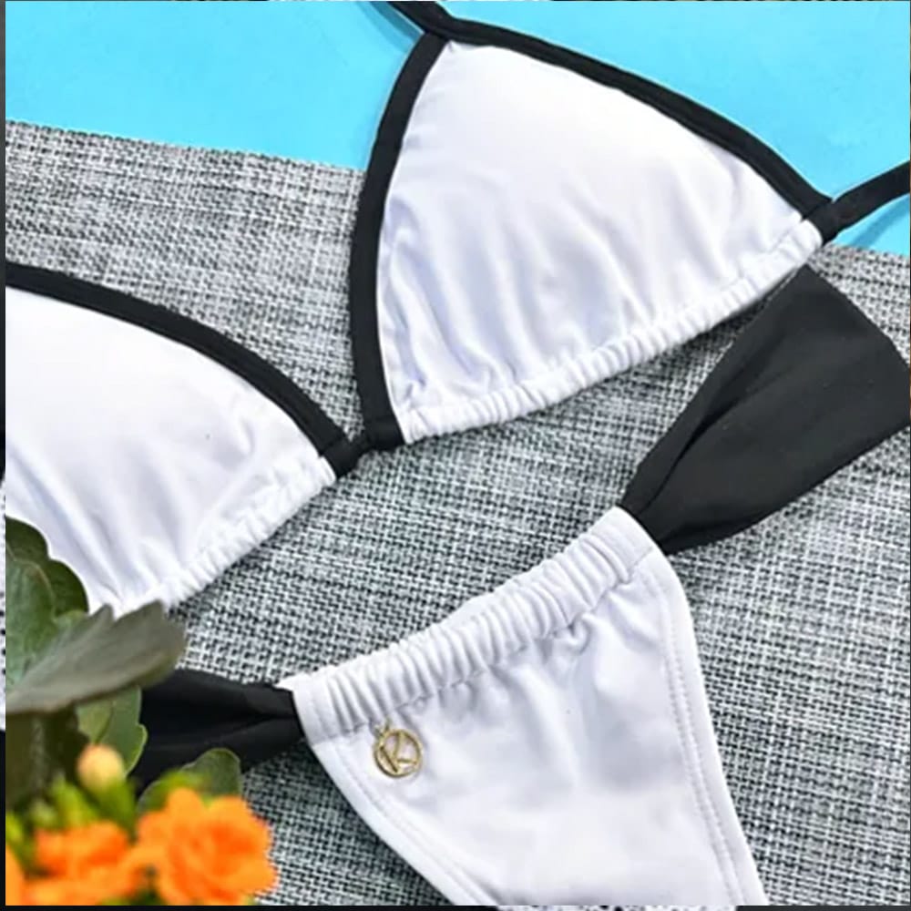 Conjunto de Biquini Black and White | Top Mara + Tanga Gali |Tanga cortininha lateral com opção de deixar mais larga |Top cortininha com abertura para bojo