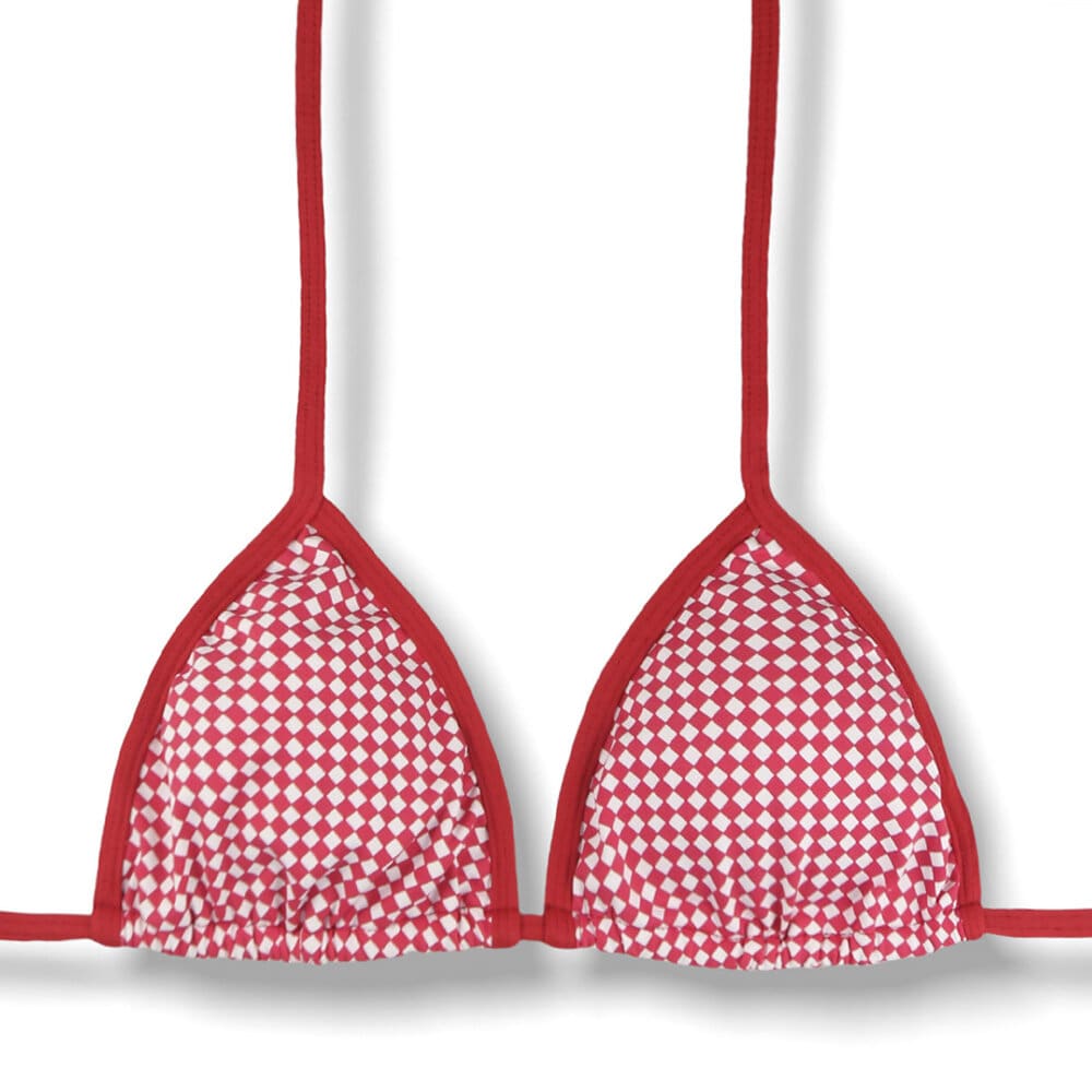 Conjunto de biquíni Vichy Vermelho | Top Mara + Tanga Isa | Top cortininha com abertura para bojo | Tanga Ripple levanta bumbum reversível na cor vermelho carmim