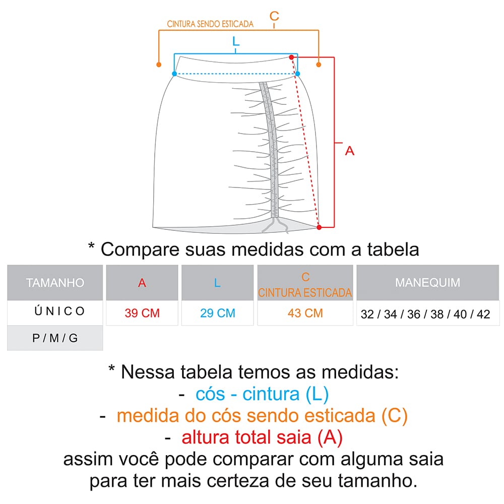 * Colissê com cordão, que ao ser puxado, cria um franzido que dá nova forma à sua saia