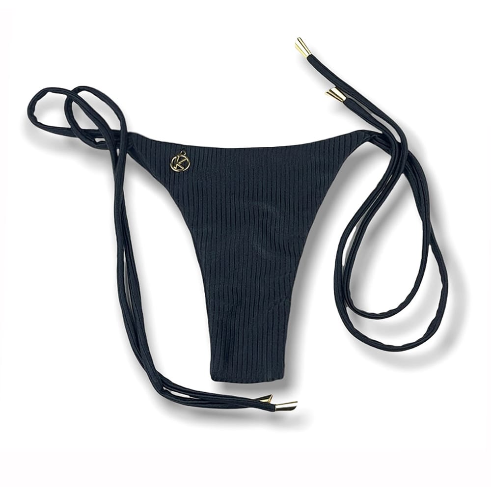 * Tanga Cora Onix na cor preta, tecido texturizado e semibrilho