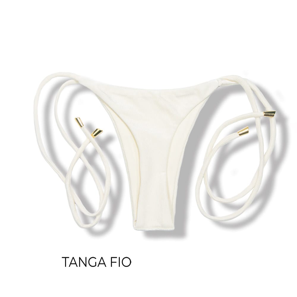 * Tanga Cora Pérola na cor off-white em tecido texturizado e semibrilho
