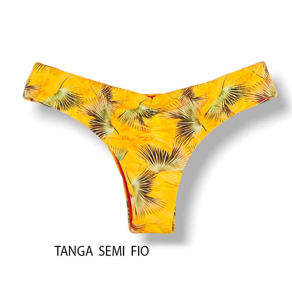 * Tanga Isa estampa amarelo tropical com a combinação vermelho carmim