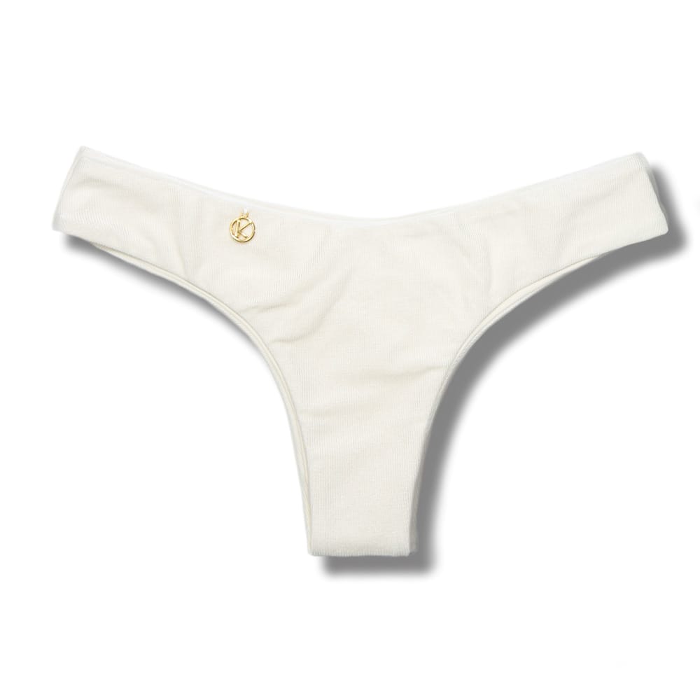 Tanga Isa Pérola | Biquíni Liso Semi Fio Ripple | Levanta Bumbum | Dupla Face Off-White | Reversível | Tecido Texturizado Semibrilho