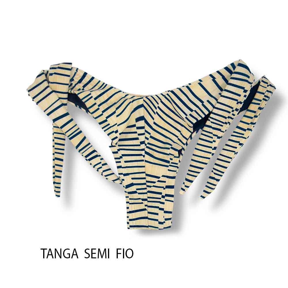* Tanga Mora estampa Mareia em tons de azul marinho e areia