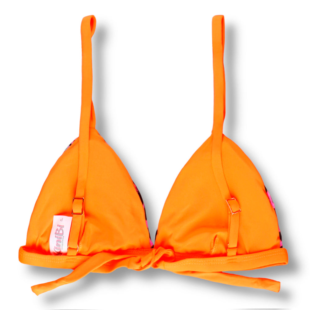 Top Jade Animal Print Mescla com Laranja | Cortininha Triängulo Fixo | Estilo Sutiã com Amarração nas Costas | Alças com Regulagem | Detalhes em laranja