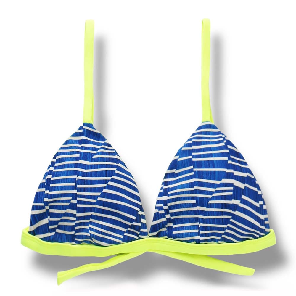 Top Jade Floripa | Detalhes na cor Amarelo neon | Cortininha Triângulo Fixo | Estilo Sutiã com Amarração nas Costas | Alças com Regulagem | Abertura para Bojo