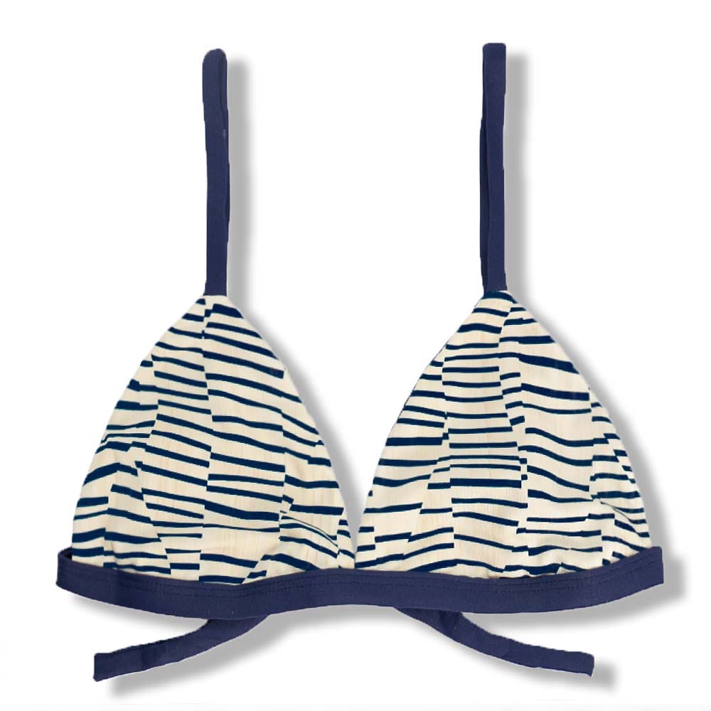 Top Jade Mareia | Cortininha Triângulo Fixo | Estilo Sutiã com Amarração nas Costas | Alças com Regulagem | Biquíni Estampado | Detalhes Azul Marinho