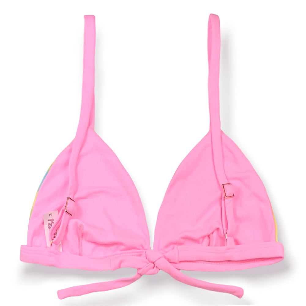 Top Jade Tie Dye | Cortininha Triângulo Fixo | Estilo Sutiã com Amarração nas Costas | Alças com Regulagem | Biquíni Estampado | Detalhe Rosa Iogurte
