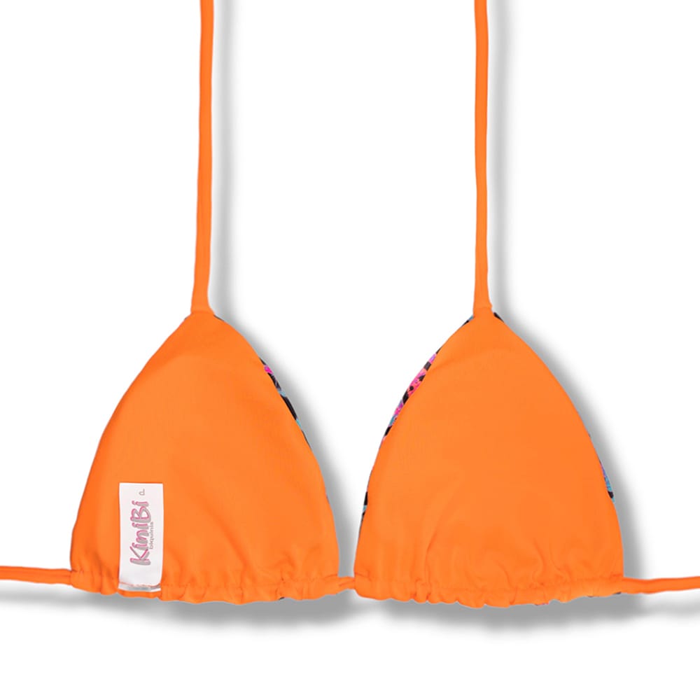 Top Lua Animal Print Mescla | Cortininha com Bojo | Dupla Face Laranja | Reversível | Amarração nas Costas e Pescoço | Biquíni Oncinha