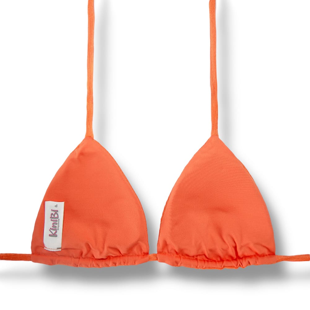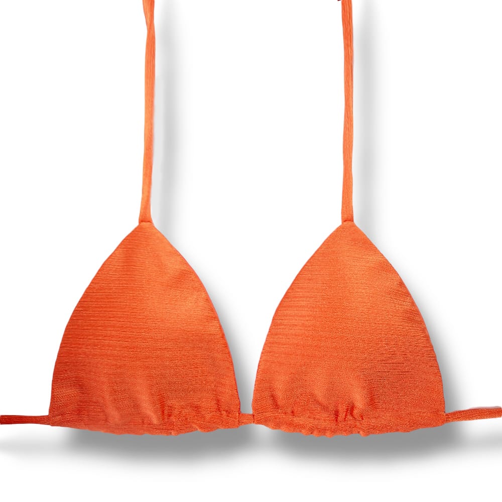 Top Lua Tangerina | Cortininha com Bojo | Dupla Face Liso | Reversível | Amarração nas Costas e Pescoço | Biquíni cor Lisa | Tecido Texturizado Semibrilho