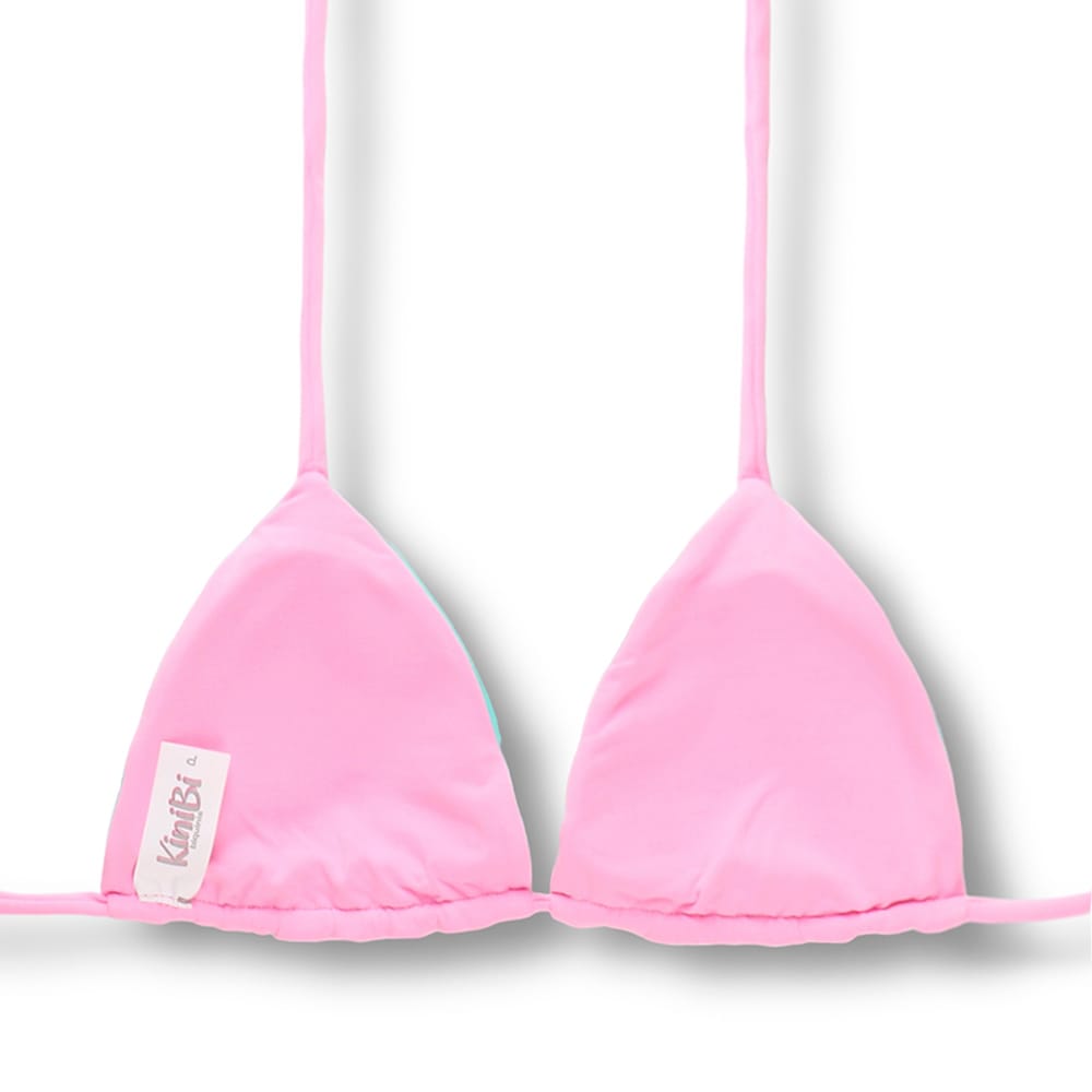 Top Lua Bicolor Verde Mint | Cortininha com Bojo | Dupla Face Rosa Iogurte | Reversível | Amarração nas Costas e Pescoço | Biquíni Liso